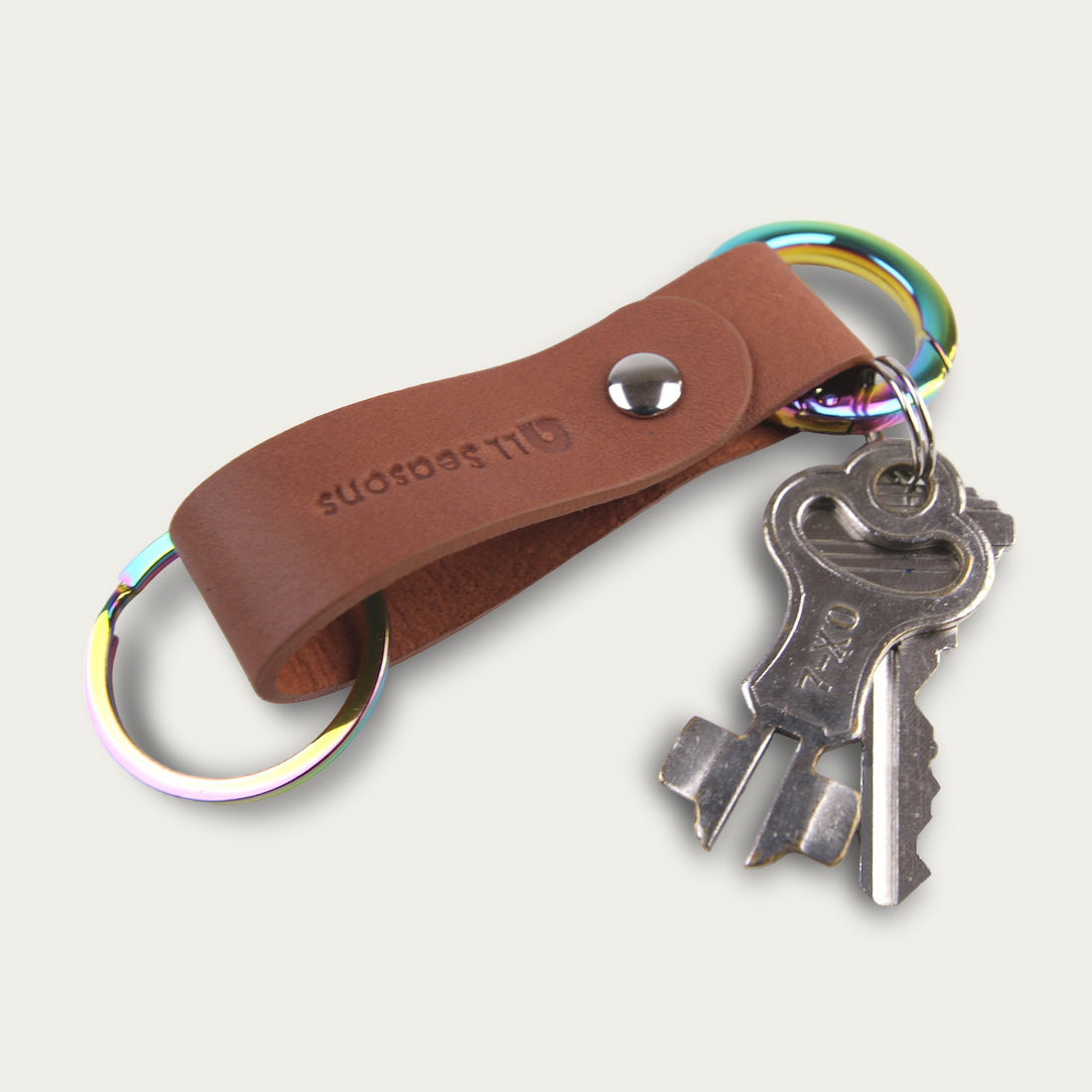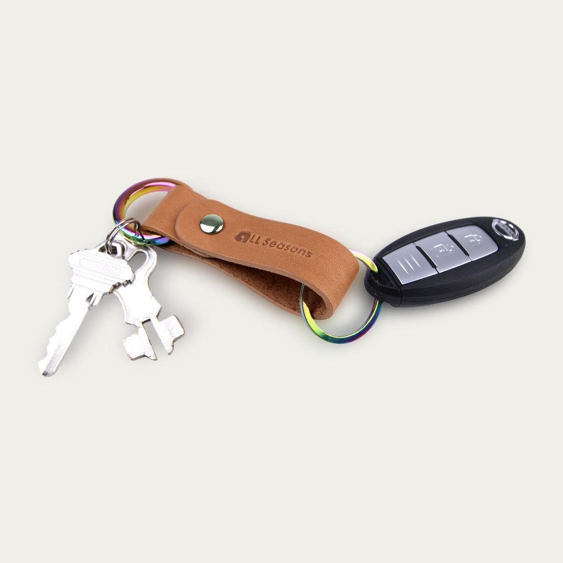 พวงกุญแจหนังแท้ ห่วงกลม 2 ห่วง สีรุ้ง [หนังเรียบ] Ver.1