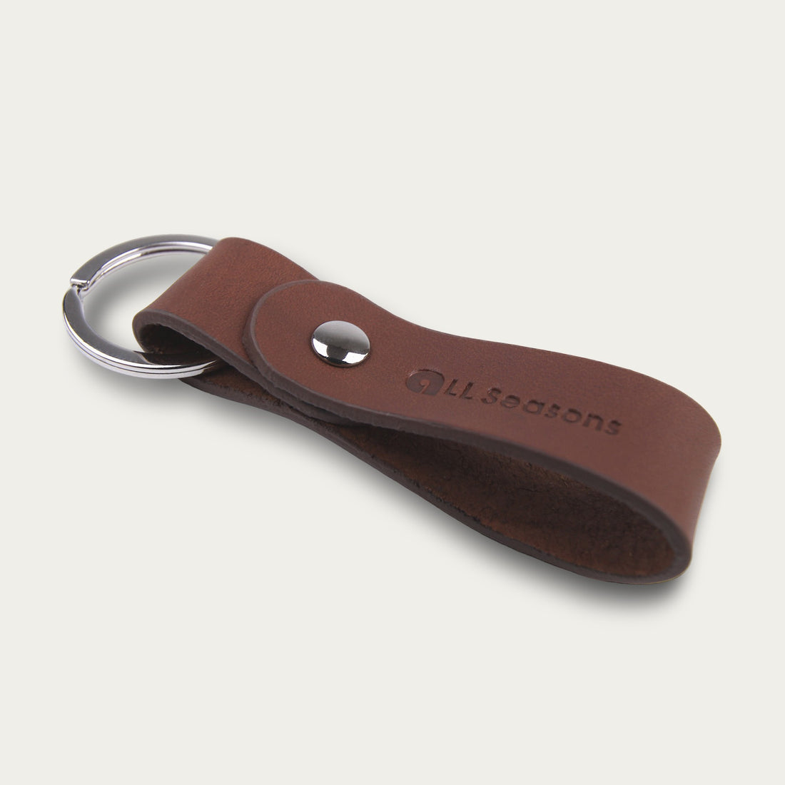 พวงกุญแจหนังแท้ ห่วงกลมแบน 1 ห่วง สีเงิน [หนังมีลาย] Hang Keychain (V.8)
