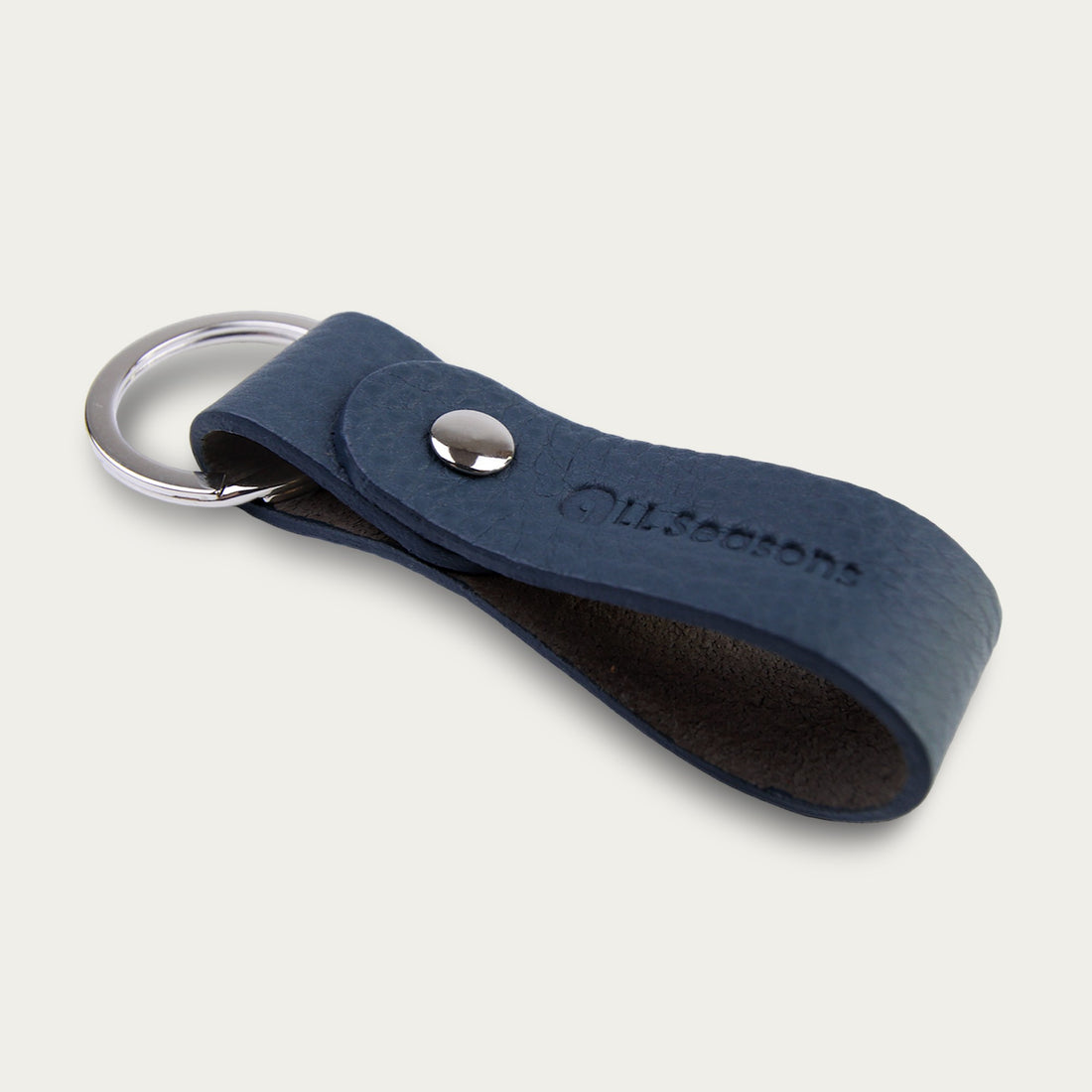 พวงกุญแจหนังแท้ ห่วงกลมแบน 1 ห่วง สีเงิน [หนังผิวเรียบ] Hang Keychain (V.7)